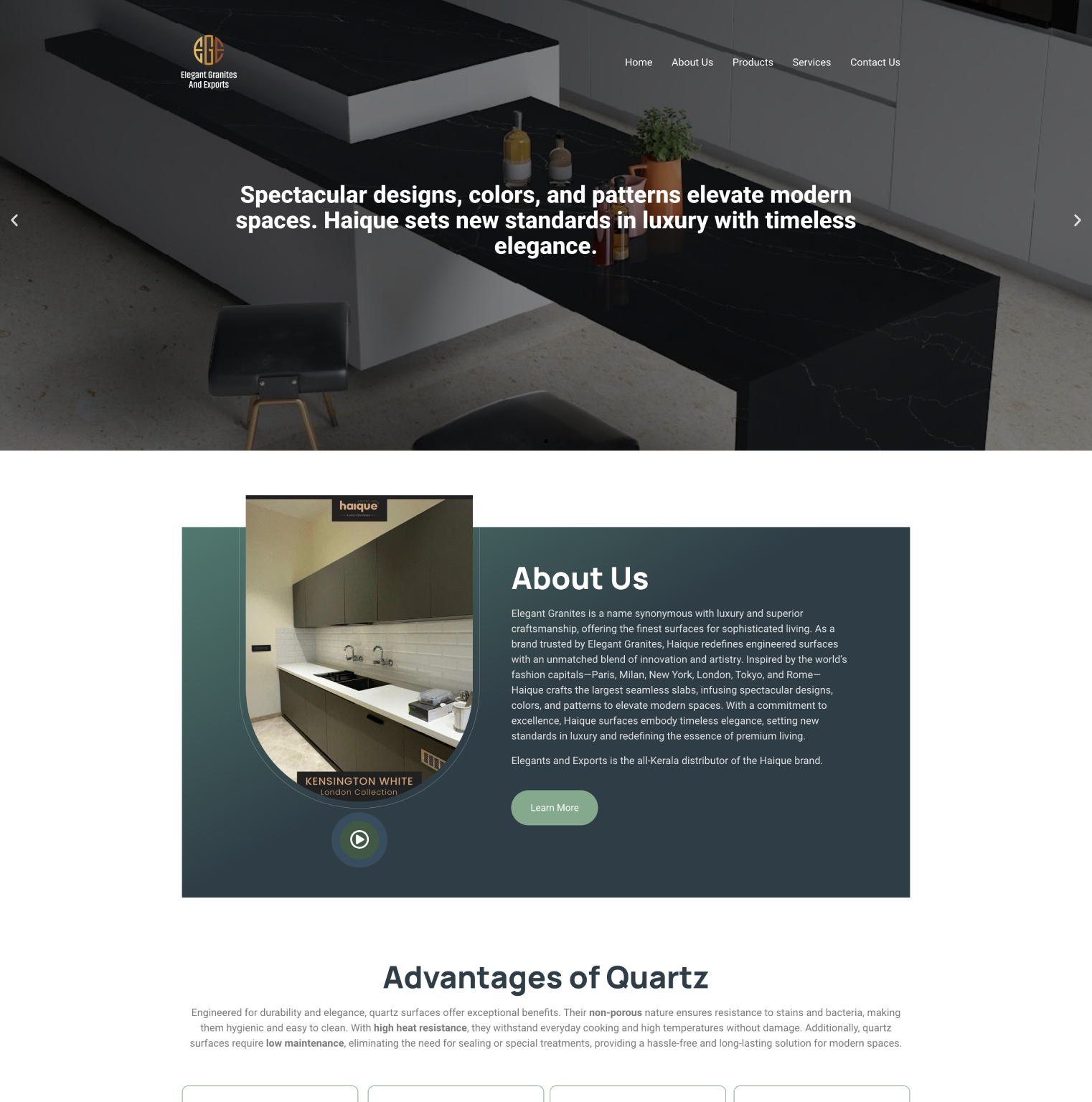 Elegant Granites is a name synonymous with luxury and superior craftsmanship, offering the finest surfaces for sophisticated living. As a brand trusted by Elegant Granites, Haique redefines engineered surfaces with an unmatched blend of innovation and artistry. Inspired by the world’s fashion capitals—Paris, Milan, New York, London, Tokyo, and Rome—Haique crafts the largest seamless slabs, infusing spectacular designs, colors, and patterns to elevate modern spaces. With a commitment to excellence, Haique surfaces embody timeless elegance, setting new standards in luxury and redefining the essence of premium living.